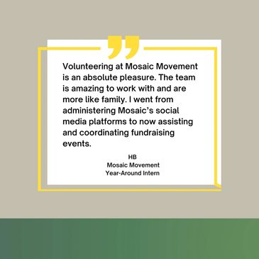 Volunteers are the backbone of Mosaic Movement. Join us and see what can be accomplished when you work alongside a team whose main focus is community.